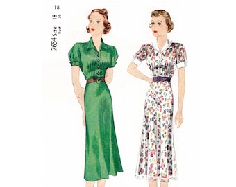 Vintage Sewing Pattern 1930s 30s Day Dress Reproduction Etsy Uk